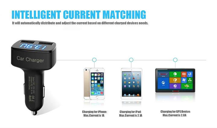 EC2, un cargador USB dual para el coche de 3.1ª y pantalla digital