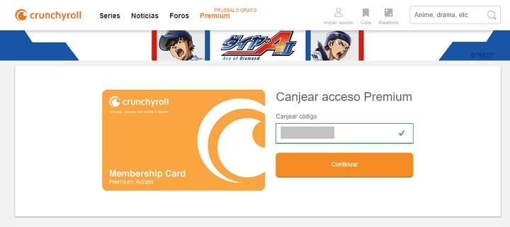 A partir de este punto, solo tenemos que entrar en este enlace de Crunchyroll y canjear el código que acabamos de obtener.