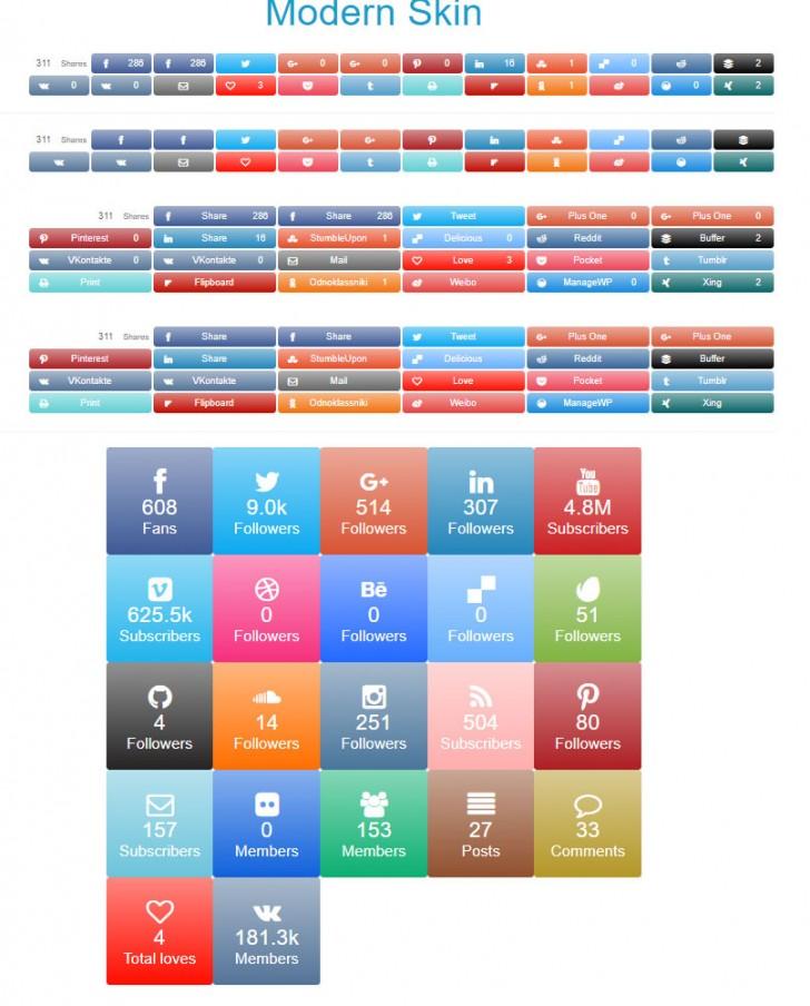 Tiene 24 redes sociales y muchas plantillas para mostrar los botones además de diferentes estilos de contadores, a mi me parece una opción estupenda si no quieres depender de plugins gratuitos o membresias anuales