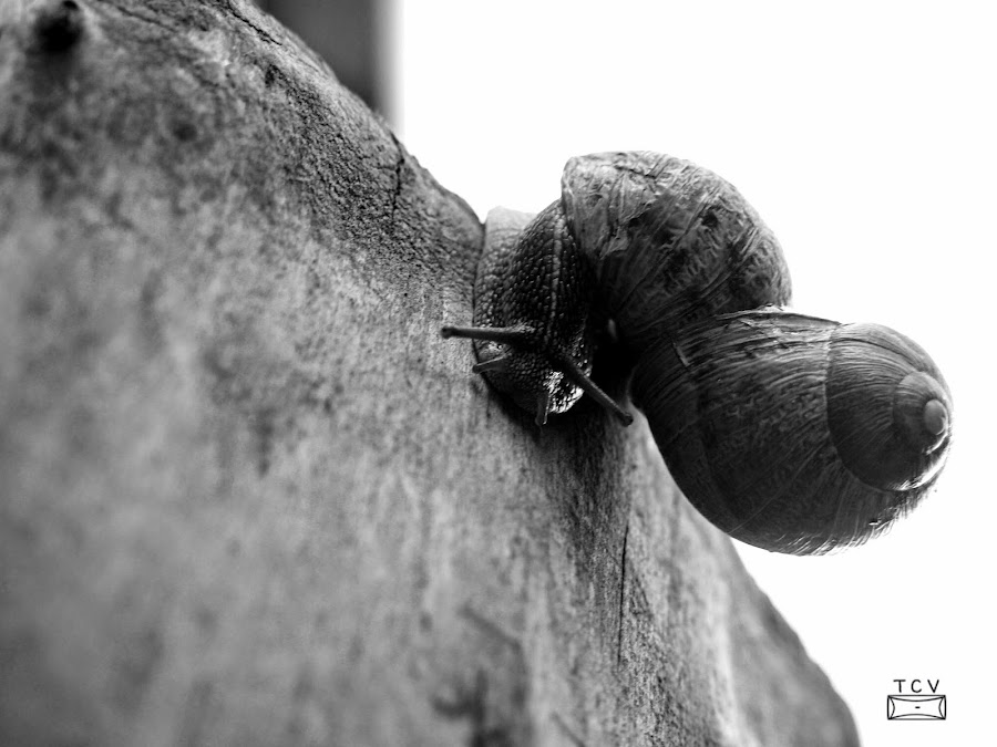 Hoy para variar hemos salido al exterior, que ganas tenía ya de sacar la cámara a pasear por el campo y buscar unas imágenes un poco diferentes. La verdad es que podía salir por la ciudad a buscar macros pero me da un poco de vergüenza...no sé ...mira una pirada con su cámara pegada a un clavo, no en realidad por lo que piense la gente, sino por el hecho de sentirme observada. En fin, en el campo nadie me mira, excepto el animalito al que en un día como hoy he molestado y por, cierto librado de la quema. Ya que he de confesaros que este caracol y sus compañeros tienen un incierto destino, o quizás no tan incierto, porque sí que es cierto que van a ir a la cazuela, pues estos bichitos cantabrones han llegado hasta Roscales de la Peña con ese único fin, proveer a mi familia política de caracoles para medio año. Y es que además estos Rueda, no saben hacer nada a poquitos, mi suegro, ese que os decía el otro día que duerme mal...es "Don madrugones" así que en uno de sus últimas malas noches volvió a la hora del desayuno con 14, si 14k de caracoles, verídico, es como los 80k de níscalos que nos cogimos este año, jeje.