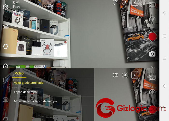 La app nos muestra una cámara con multitud de funciones y ajustes. Para empezar, podemos seleccionar la resolución y la tasa de frames de un largo listado, en función de las características de la cámara de nuestro terminal. Contamos con hasta una resolución 4K pero está limitado a una tasa de 30 fps. Una cifra que también se mantiene en otras resoluciones más bajas. Da igual que tu smartphone grabe a 120 fps porque desde la app no llegaremos a esa tasa. El enfoque también se puede ajustar así como el flash a modo de linterna.