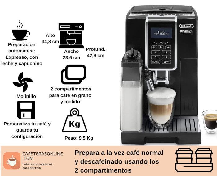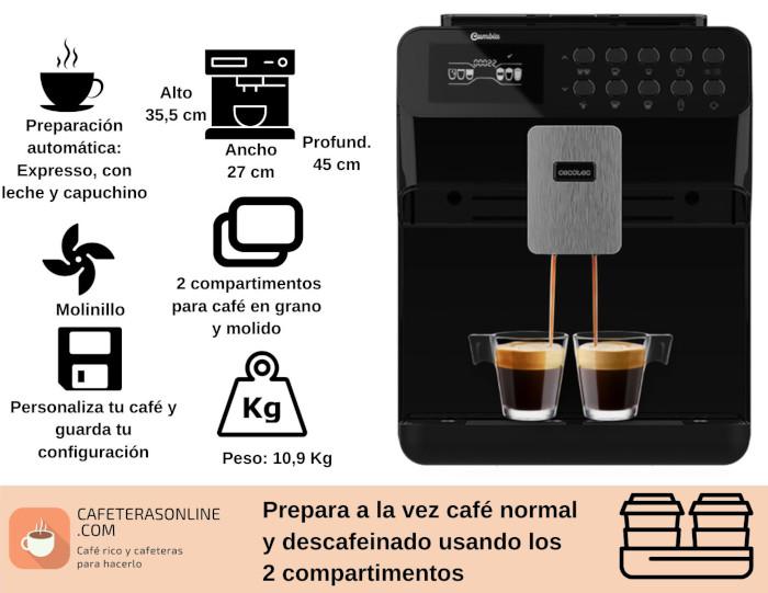 También comentarte que si vas a usar café molido como puede ser el descafeinado, asegúrate que la cafetera tiene compartimento para ello.Cafetera automática café normal y descafeinado
