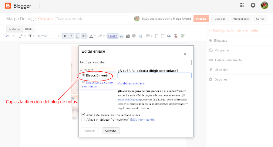 Entonces ¿cómo lo hice? pues más fácil todavía. Me fuí a una entrada nueva de blog.