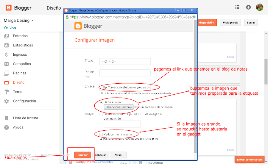 Ahora nos vamos a Diseño y añadimos un gadget HTML Javascript y lo pegáis dentro. Aceptas y guardas configuración.