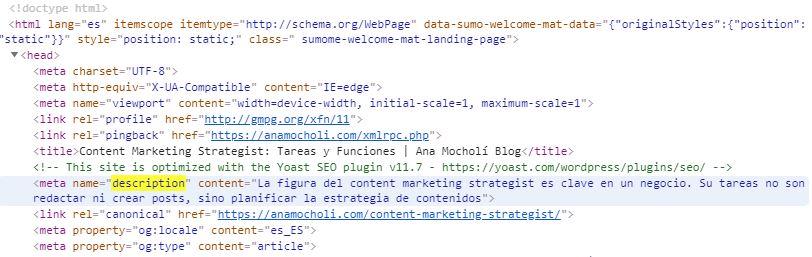 ¿Dónde podemos encontrar la Meta Description para SEO?