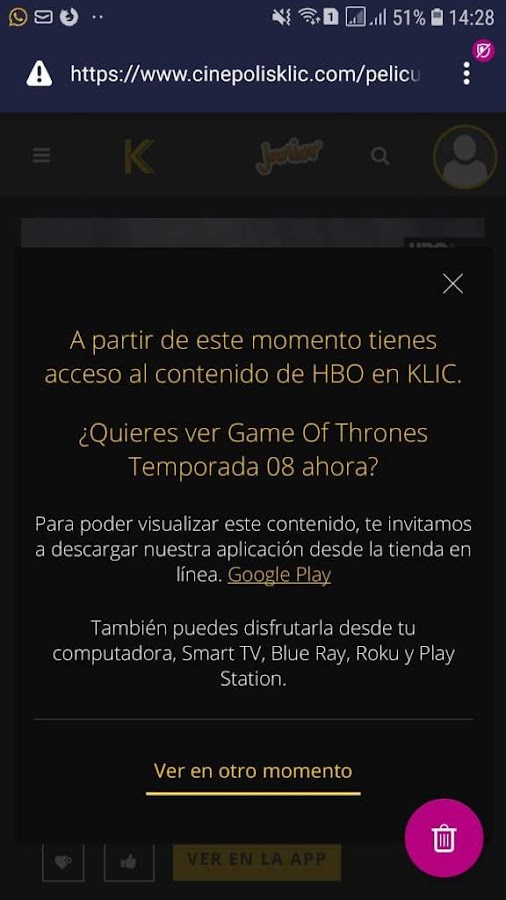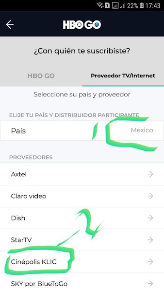 Una vez agregado el metodo de pago buscamos HBO GO en Cinepolis KliC