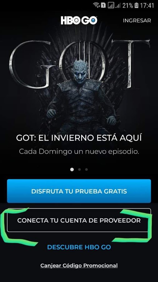 Ya comprada la suscripción abrimos la Web de HBO GO
