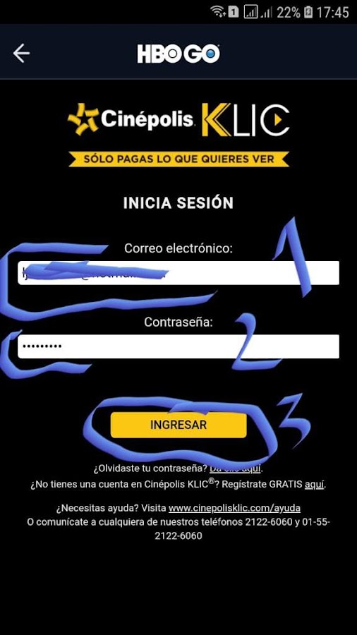 Seleccionamos Cinepolis Klic, ingresamos los datos de la cuenta creada ya con la suscripción comprada