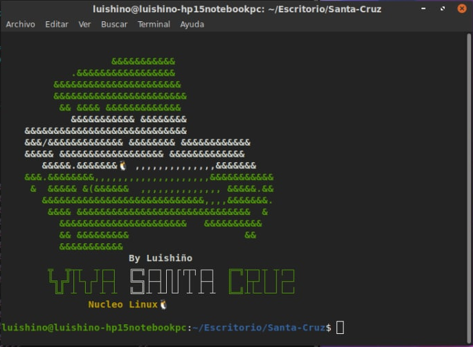 Hola , nuevamente paso por aquí para compartir una actividad usando código bash y código ascii para mejorar nuestro escript ,como tambien comentarles que he participado en el ChallengerBandera, es un reto propuesto por la comunidad núcleo linux para dar iniciativa de hacer ASCII Art con temática de celebración de cada departamento y este mes de septiembre le toco a la ciudad de Santa Cruz.
