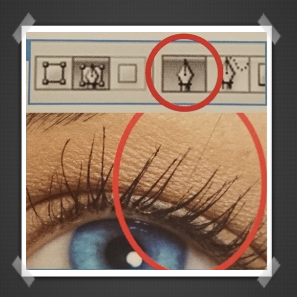 En primer lugar crea una nueva capa vacía, y llámala pestañas. Selecciona la herramienta Pluma, y con ayuda del zoom acércate todo lo que puedas a la zona en la que vas a trabajar. Así podrás comprobar con precisión los cambios que hagas sobre la imagen.