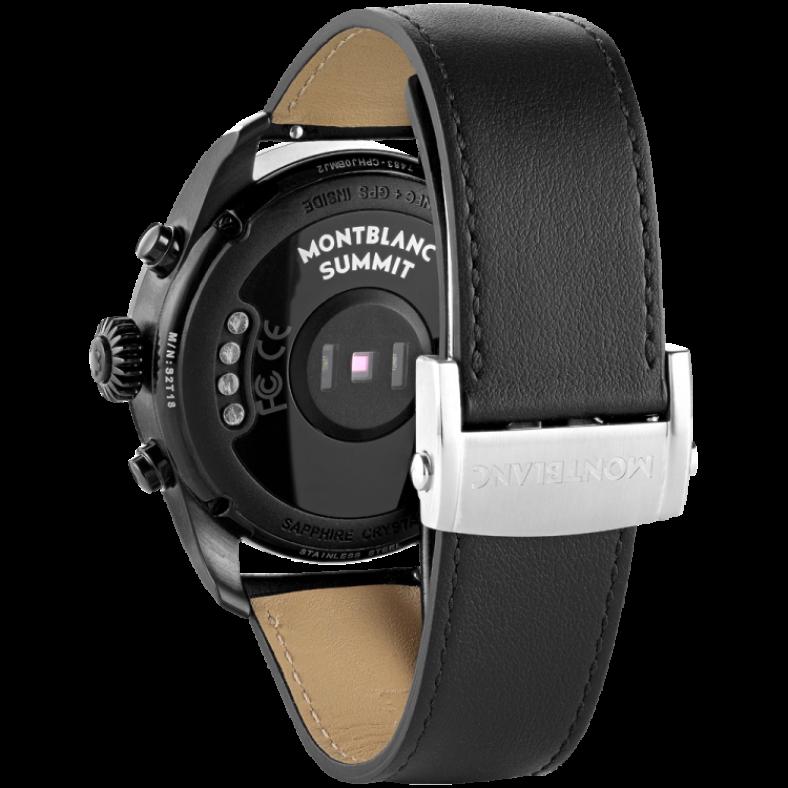 El Montblanc Summit 2 luce una apariencia sumamente elegante que se caracteriza por un case de 42mm (unisex) hecho de acero inoxidable, el cual consta de distintas presentaciones de colores que varían entre negro, plateado y gris. El dial consiste de una pantalla de 1.2 pulgadas con tecnología AMOLED y cristal de zafiro para garantizar su resistencia, esta presenta una resolución de 400 x 400 píxeles y una densidad de 327ppp. En la parte posterior se halla un sensor de ritmo cardíaco junto a los respectivos pines de carga y una cubierta de metal con cristal.