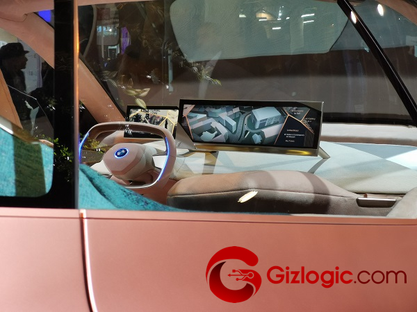 Sobre el panel frontal se pueden apreciar dos pantallas de importantes dimensiones y no se aprecia ningún panel o botón físico extra en el resto del vehículo, pues su “sistema de interacción natural” hará uso de comandos de voz y detección de gestos. Así, las tecnologías digitales solo serán visibles cuando el conductor o los pasajeros desean utilizarlas, por ejemplo para el consumo de contenidos multimedia.