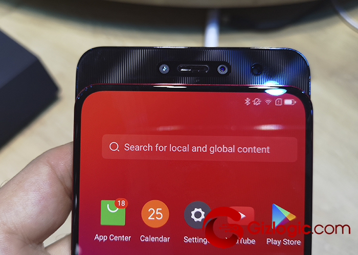 Debajo de la pantalla está situado el sensor de huellas, al igual que en el Samsung Galaxy S10. Su mecanismo de cámara frontal deslizable funciona a la perfección como hemos podido probar. Aquí es donde tenemos dos sensores de 16 MP y 8 MP, para selfies y también para el desbloqueo facial por infrarrojos. En el caso de la cámara principal tenemos dos sensores, uno de ellos un Sony IMX519 de 24 MP con apertura f/1.8 y enfoque por detección de fase, junto a otro de 16 MP con la misma apertura focal.