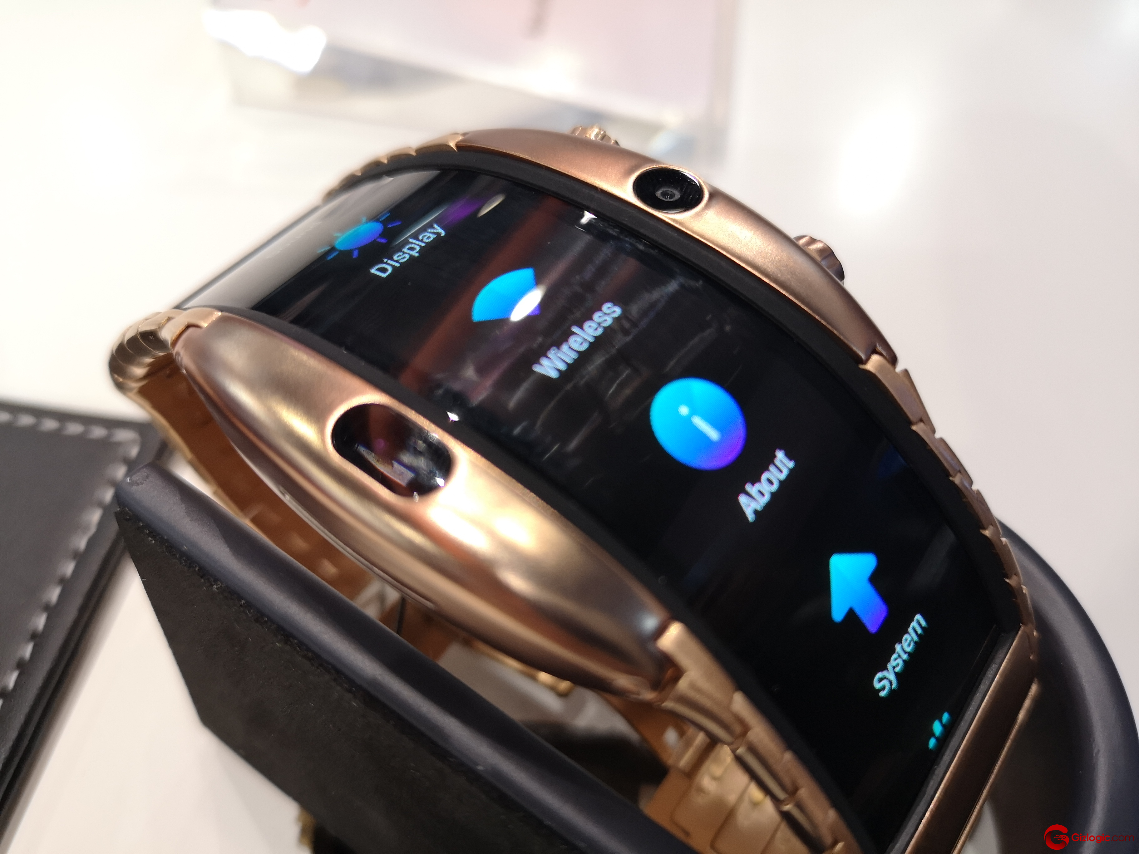 Este teléfono plegable parece más un reloj de muñeca extravagante que un móvil, ya que se coloca alrededor de la muñeca.