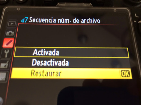 2. El contador de fotos de la cámara se pone a cero antes de empezar la sesión. Supongo que cada cámara lo hará de una manera. En la Nikon D610 está en el menú Secuencia num de archivo y hay que darle a restaurar.