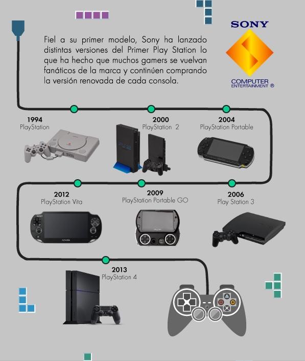 Otra de las gigantes de la industria, la cual fue fiel a su primer modelo, lanzando en 1994 el primer Play Station que rápidamente se vio aceptado por los primeros gamers, que distinguían en él cualidades que hasta ahora no habían dado antiguas empresas como Casio, Apple y Atari. Sony había encontrado un nicho de mercado bastante fuerte, en donde los jóvenes preferían mejorar sus habilidades y tener acceso a juegos cada vez más complejos.