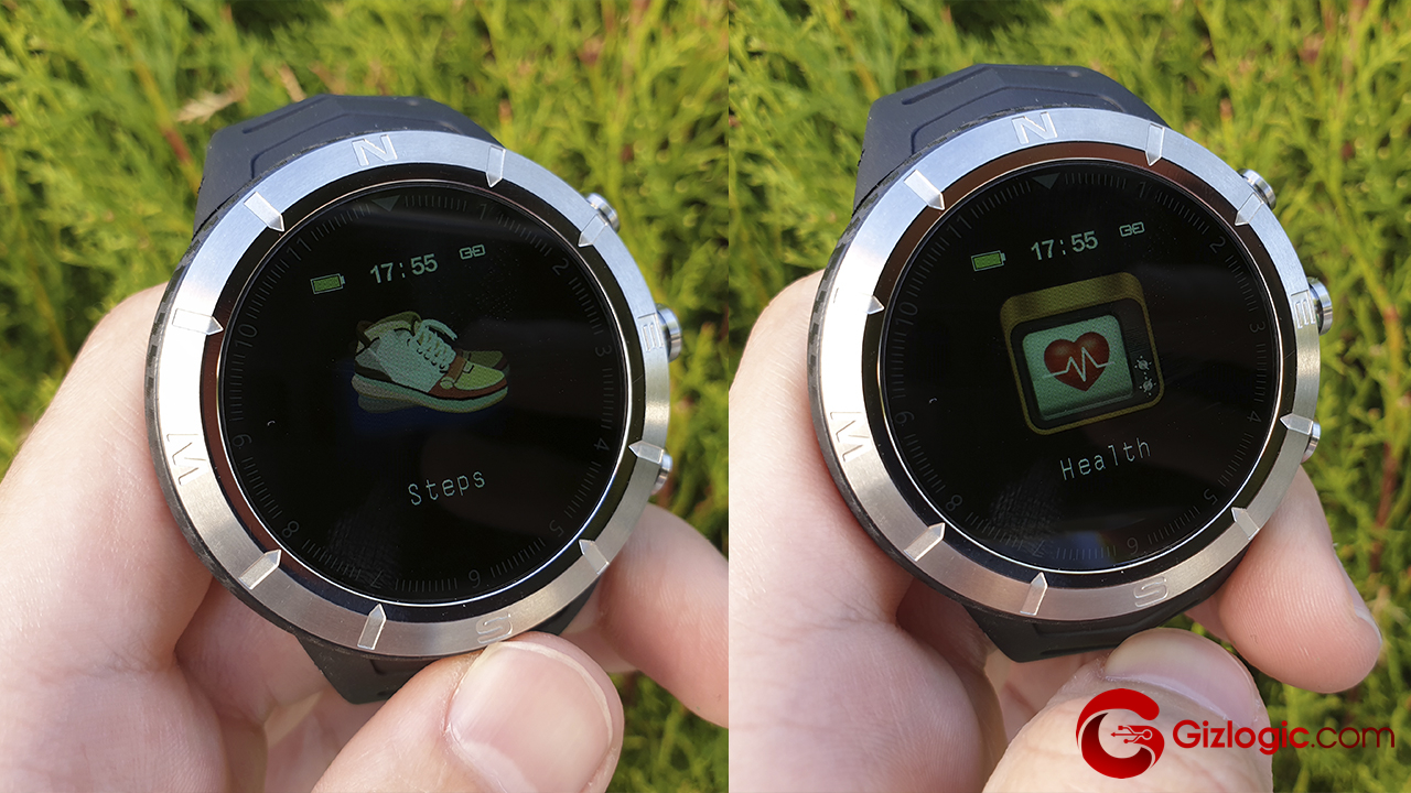 El menú del reloj inteligente es amplio y presenta múltiples opciones a su vez, aquí recogemos los diferentes apartados de su interfaz.Primera pantalla (Steps): Registro de los pasos realizados durante la jornada, cálculo de las calorías consumidas y distancia total recorrida en el día.