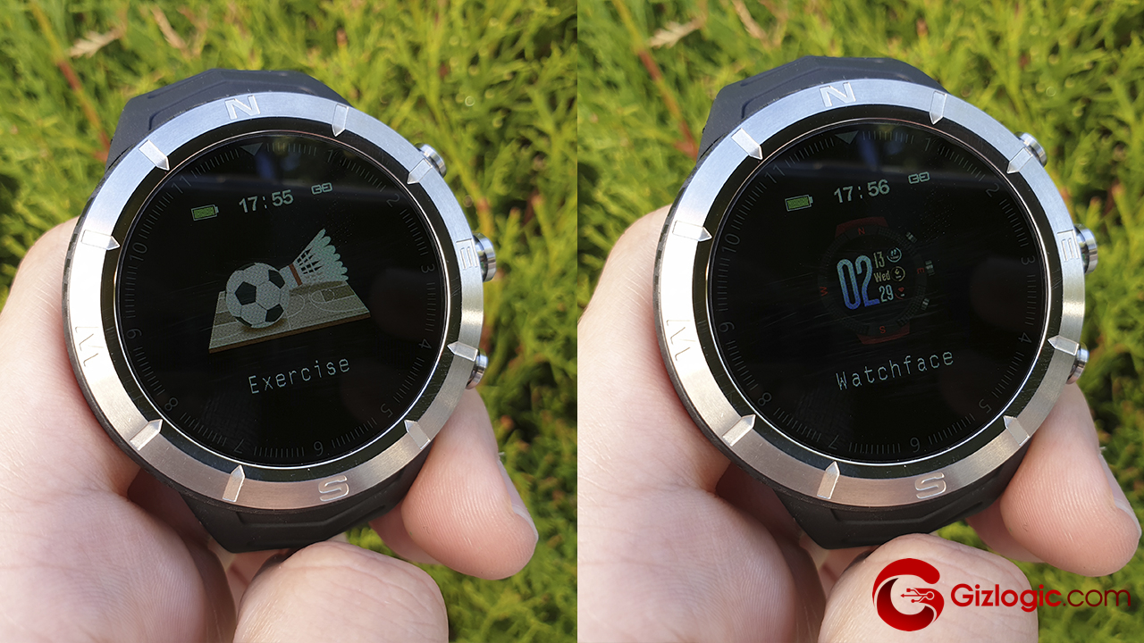 El diseño del smartwatch deportivo es bastante convencional salvo por algunos aspectos estéticos que destacan. Este No.1 DT08 está realizado en una construcción de plástico con fibra de carbono que reduce el peso del mismo y favorece su durabilidad. Una elección que cambia drásticamente con la aleación de zinc del No.1 DT28. Cuenta con unas medidas de 5,3 x 5,3 x 1,7 cm, un smartwatch generoso en dimensiones para albergar una gran batería de 350 mAh. No obstante, el reloj se siente ligero en la muñeca con un peso de 69 g.Construcción con acabado en fibra de vidrio y anillo en acero