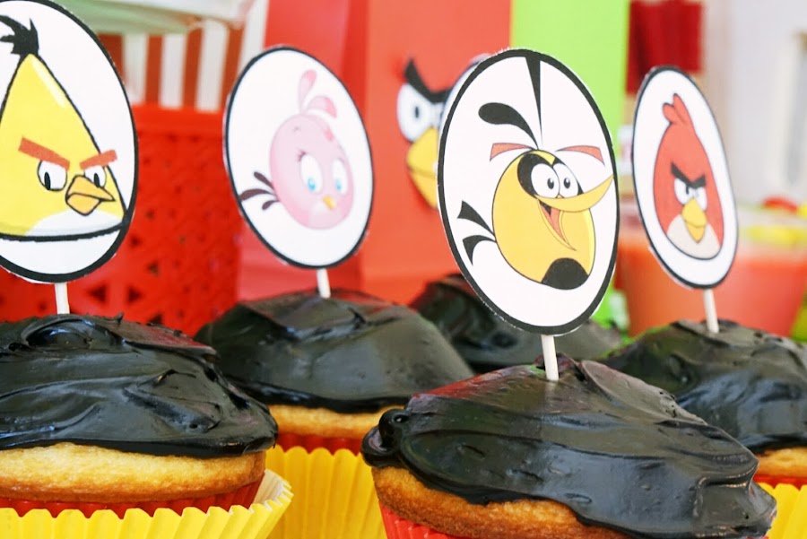 Tampoco no podían faltar los cupcakes de chocolate y menta, con toppers de Angry Birds.