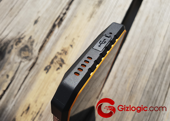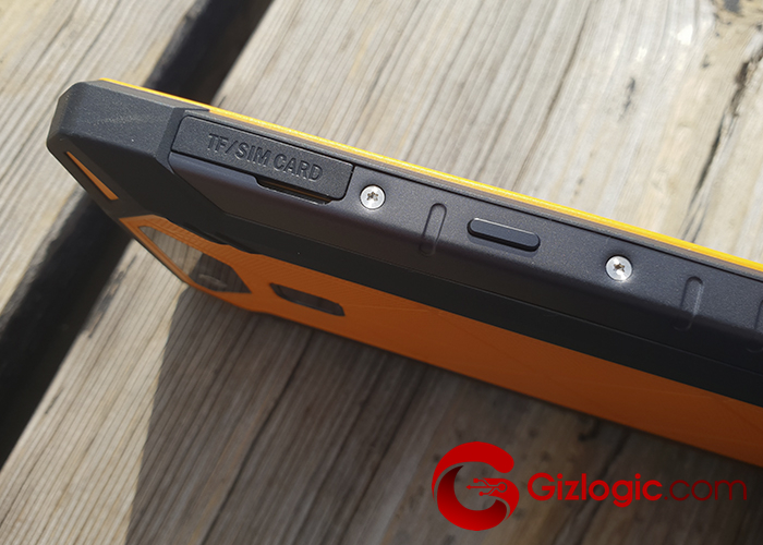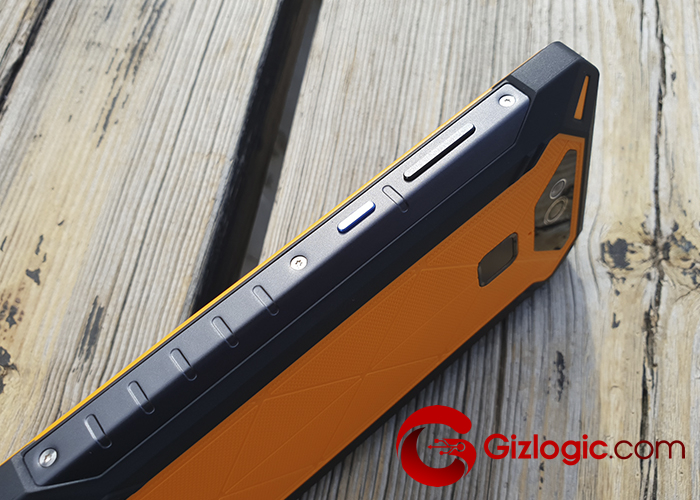 A los cantos podemos comprobar como las conexiones cuentan con su tapa. En el canto superior tenemos el conector jack de auriculares. Al inferior, el micrófono, conector USB-C con conectividad OTG y el altavoz del que hablaremos más adelante. A la izquierda, la bandeja para dos tarjetas Nano-SIM o Nano-SIM más una microSD. Como añadido, también incluye un botón que activa la cámara aunque se puede cambiar por cualquier app del sistema. Por último, a la derecha está el controlador del nivel de volumen y el botón de desbloqueo del Nomu S50 Pro.