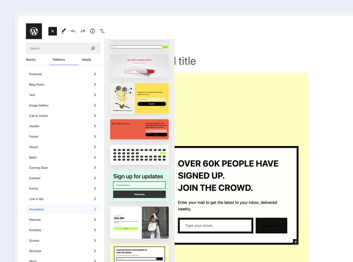 No tienes que empezar de cero. En WordPress.com, cualquier sitio puede añadir o convertirse en una newsletter. Si te has estado planteando expandir tu audiencia, tienes el bloque Suscribir y los patrones de newsletter a tu disposición para empezar tu andadura. Son el binomio perfecto para transformar una fugaz visita en un vínculo duradero.Cómo empezar