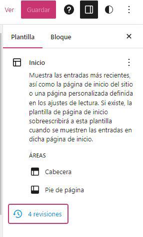 Cuándo utilizar esta función: esta función es útil si has estado experimentando con algunos cambios de estilo en la plantilla de tu página de inicio, pero después de probarlos un par de semanas no te convence el nuevo diseño. En este caso, puedes utilizar las revisiones para restaurar una versión anterior de la plantilla.