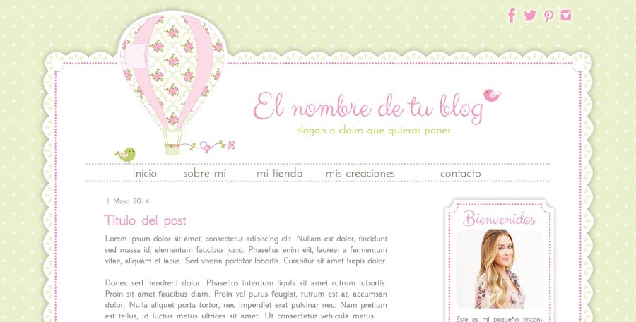 Como sabéis, los blogs prediseñados son exactamente iguales que cualquier blog que personalizo. Son igual de bonitos e incluyen exactamente los mismos elementos.