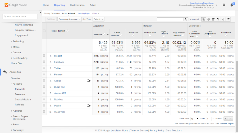 Veréis que os dice el número de sesiones que llegan a vuestro blog gracias al resto de diferentes redes.