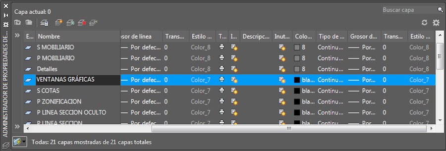 Para empezar crearemos una capa nueva a la que llamaremos VENTANAS GRÁFICAS, en ella incluiremos todas las ventanas gráficas de nuestra presentación a las que se le ocultaran el marco.