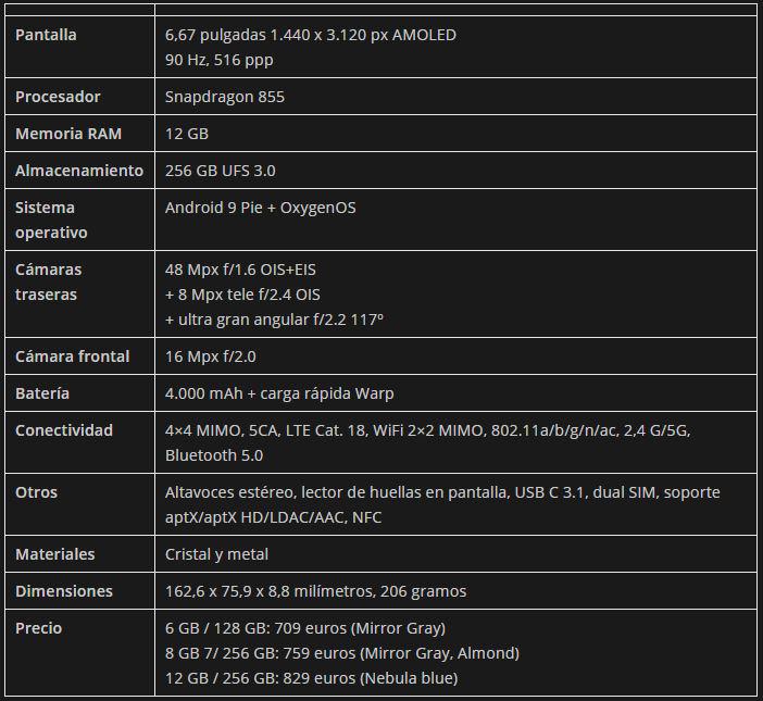 Aunque sus rivales directos opten por utilizar cristal en su parte trasera, el One plus 7 pro ha decido innovar en su diseño y utilizar aluminio. Gracias a esto las huellas no serán algo por lo que debamos preocuparnos, aunque vale la pena mencionar que debido a esto no contaremos con carga inalámbrica.