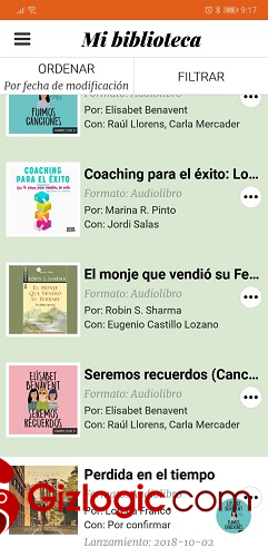 Mi biblioteca: Esta, junto con Categorías, es la sección a la que más partido le vas a sacar. Aquí verás todo el material que has guardado en tu biblioteca. Puedes ordenar por fecha, por autor, por título… Además de filtrar si quieres que te muestre, por ejemplo, solo los que estás escuchando, los que tienes pendientes, los que has terminado o incluso los infantiles, para poder prestarle tu cuenta de Storytel a los peques.
