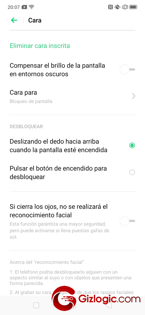 La seguridad es otro apartado que no está descuidado en el Oppo Reno 10X Zoom. Por un lado tenemos el sistema de identificación de huella integrada en pantalla, con un buen reconocimiento siempre que coloquemos el dedo en el lugar exacto. Aunque el método más interesante es el reconocimiento facial con la aleta desplegada. Para activarlo hay que deslizar sobre la pantalla encendida con un reconocimiento más rápido de lo esperado.