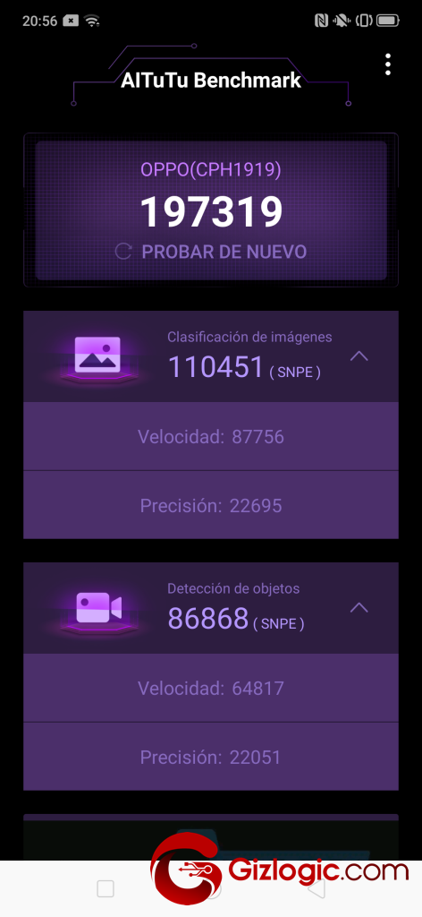 El smartphone de Oppo cuenta con una bandeja para dos tarjetas nanoSIM o una nanoSIM más una microSD para ampliar la capacidad de memoria. También incorpora conectividad Bluetooth 5.0, WiFi ac Dual Band y un chip NFC. Su conector USB-C cuenta con soporte para conexión OTG. Sí que se echa en falta un conector jack para auriculares, sobre todo al contar con Dolby Atmos, lo que nos obliga a utilizar un adaptador. El smartphone incluye GPS dual F1+L5 para ofrecer una mayor precisión en la localización y navegación GPS.Buen apartado de conexiones con GPS dual para un mejor posicionamiento, chip NFC y dual SIM