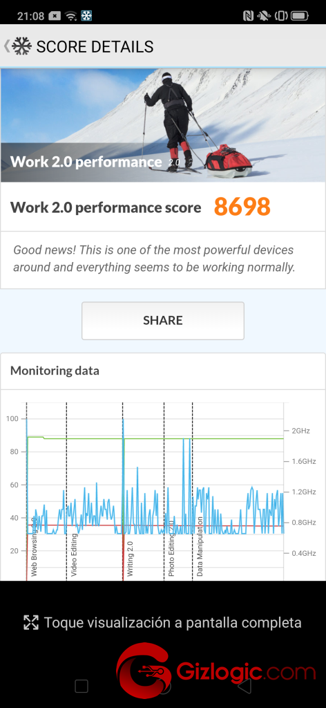 En el caso de la cámara frontal contamos con un sensor de 16 MP con apertura f/2.0 y un ángulo de visión de 79º. Con respecto a la grabación de vídeo conseguimos una resolución 4K o 1080p a 60 fps. La estabilización solo está disponible en resolución FHD. Obviamente, la selección del zoom también está presente en la grabación de vídeo, aunque se pierde más nitidez al ampliar la imagen que en la captura fotográfica.