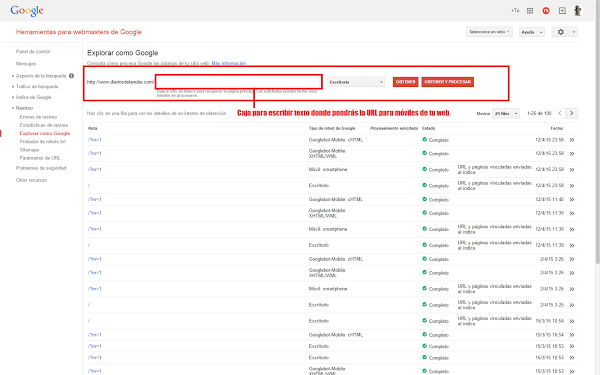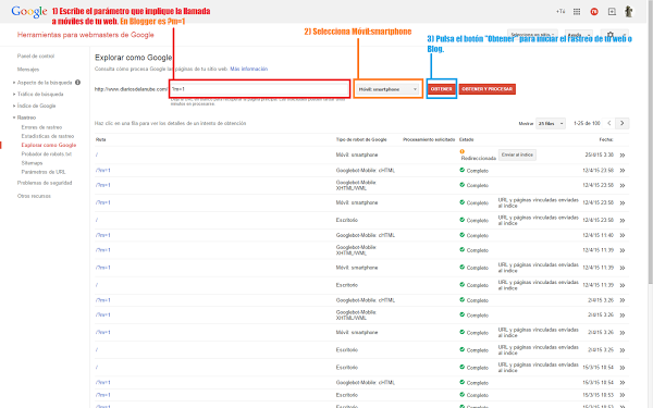 2) Ahora sólo te queda comprobar en las herramientas para webmaster de Google que el rastreo de los robot de Google para móviles de tu web o blog es el correcto: