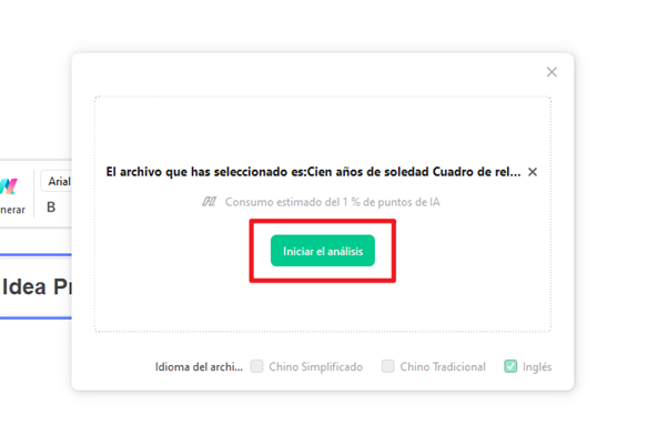 Lleva a cabo el análisis haciendo clic en "inicia el análisis". Luego, solo tendrás que esperar a que la inteligencia artificial analice el contenido.