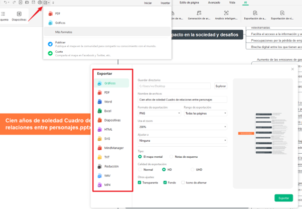 - Generación con un solo clic. Con un solo clic vas a poder llevar a cabo la generación de mapas mentales y de resúmenes, ahorrando tiempo y esfuerzo.