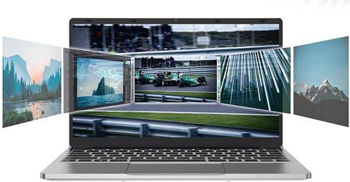 El EZbook S6 cuenta con una pantalla de 14 pulgadas con resolución Full HD (1920×1080) que proporciona imágenes nítidas y claras. Además, su tecnología IPS permite ángulos de visualización amplios y una reproducción de color precisa. Integra una Tarjeta gráfica, GPU Intel UHD Graphics 600, suficiente para procesar imágenes y gráfica que no consuman muchos recursos, no es un portátil para diseñadores gráficos o gamers.