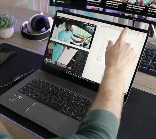 El panel QHD+ ofrece una relación de aspecto de 16:10, lo que es ideal para el trabajo multitarea y la edición de contenido visual. La pantalla True Pixel está Verificada por Calman, ofrece imágenes nítidas y claras con una gama de colores DCI-P3 del 100%.