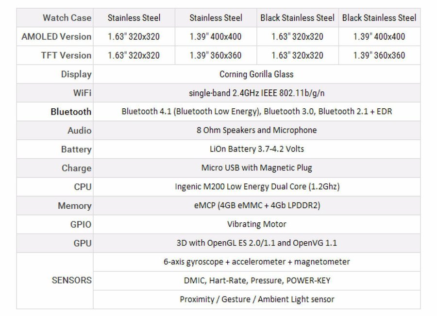 Cuenta también con dos versiones de pantalla, una TFT o una AMOLED, consiguiendo resoluciones de 400x400 puntos para el caso AMOLED y de 320x320 para el TFT.