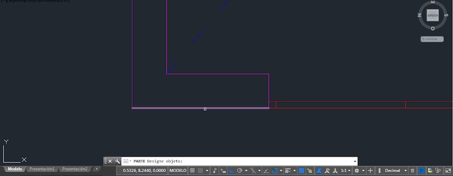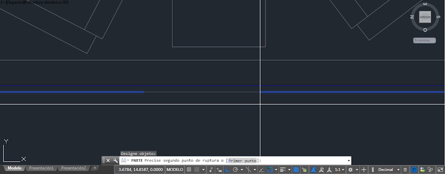 Primero iniciamos el comando PARTE y seleccionamos la línea que vamos a partir.
