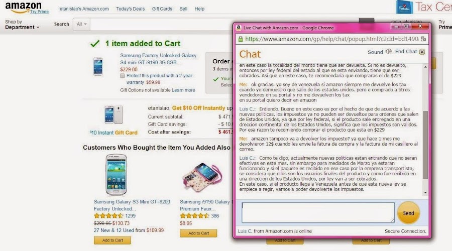 De esa forma es que puedes comprar en Amazon sin pagar TAX, o mejor dicho, esa es la manera para lograr que Amazon.com te devuelva el impuesto que pagaste en las compras hechas al estado de Florida pero que realmente son enviadas a países fuera de los Estados Unidos.