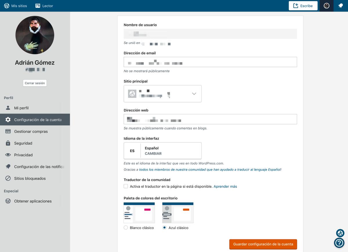 Nos alegra presentar unas mejoras que harán de tu escritorio de WordPress.com una experiencia más accesible y personalizada. Ahora podrás, desde la página de ajustes de tu cuenta, elegir una de nuestras dos nuevas paletas de color; Blanco Clásico, con un aspecto moderno, y el Azul Clásico de siempre. Estos colores han sido optimizados para tener un contraste mayor que facilite la lectura como parte de nuestro compromiso por el diseño inclusivo, consiguiendo un ratio de contraste de al menos 4.5:1.