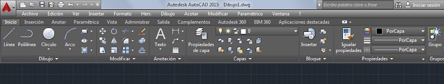 Esta opción es la que trae por defecto Autocad, por lo que una vez que instales el programa la cinta de opciones de vera así: