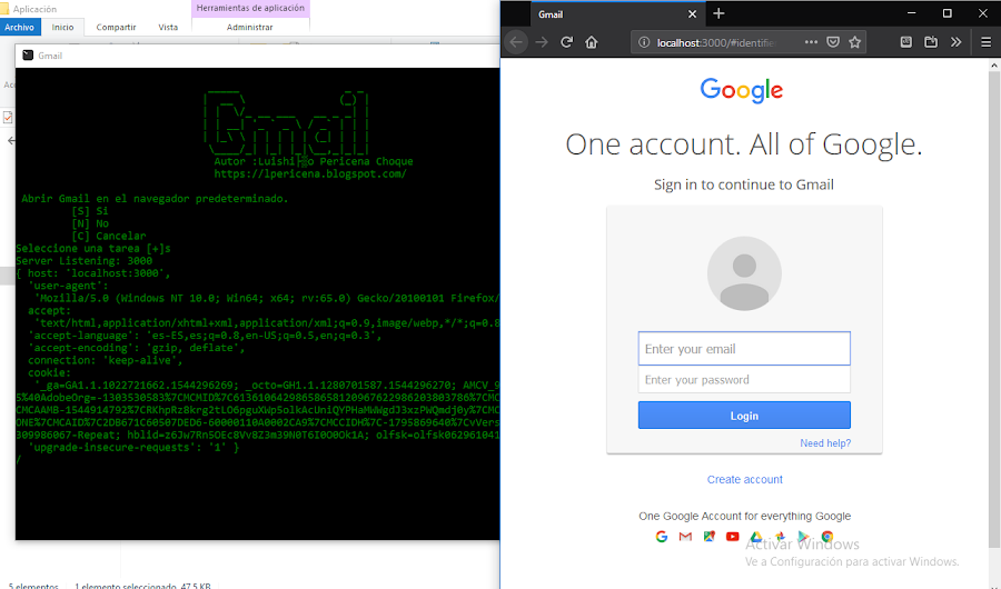 Phishing facebook gmail con node.js