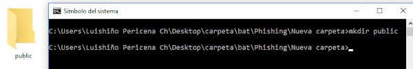 Creamos una carpeta desde el cmd o consola mkdir public