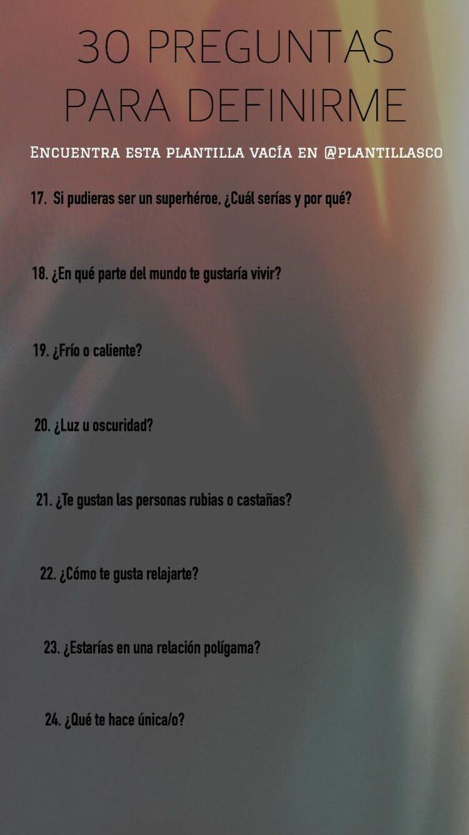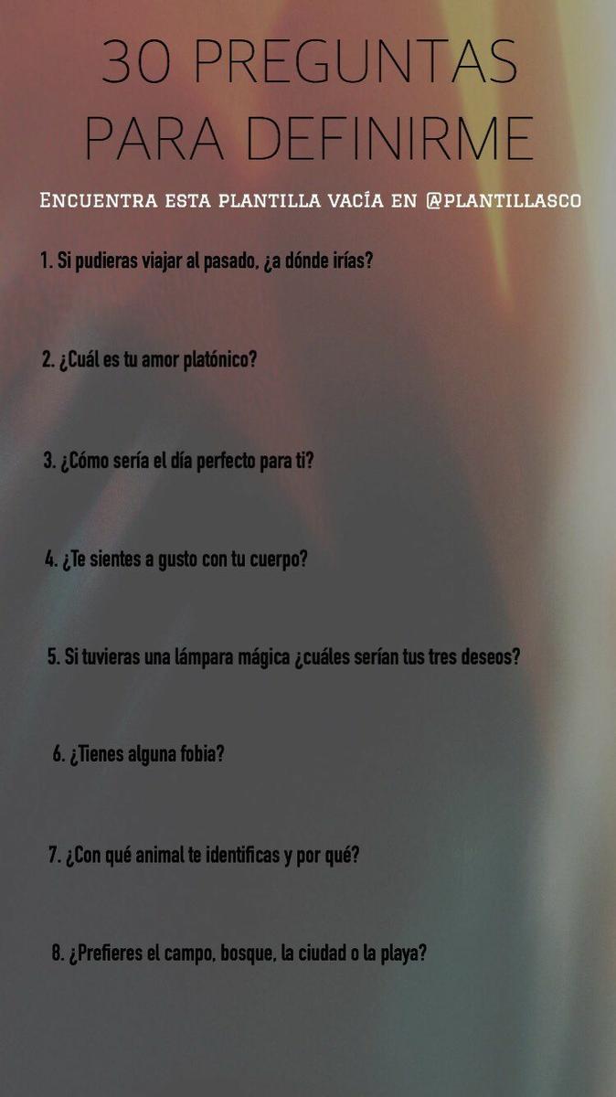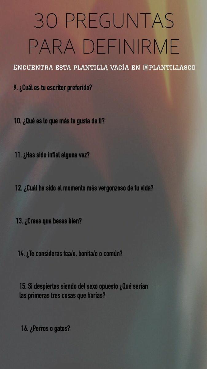 Una plantilla dedicada a quienes quieren que los conozcan más que por medio de una pantalla. Estas 30 preguntas para definirme es una de las mejores plantillas de preguntas para instagram que puedas encontrar en internet.15 preguntas para conocerme