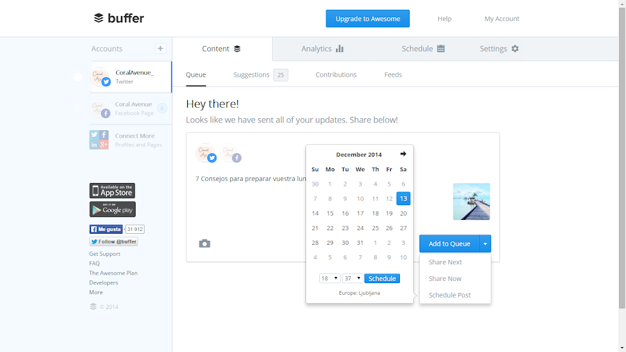 Hoy os quiero hablar de Buffer, y voy a aprovechar que quiero crear cuenta para Coral Avenue para hacerlo.