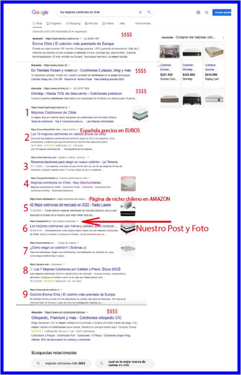 6.- Nuestro post de Seopartners.cl , que no tiene enlaces para comprar, pero que funciona como guía de estrategia de posicionamiento web.