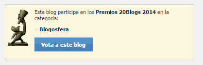 Como decíamos al principio del post: este blog participa en los premios 20 blog, concretamente en la categoría de Blogosfera compitiendo con un total de 933 blogs.